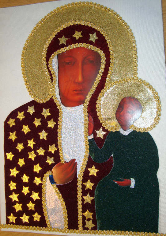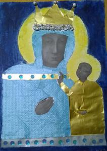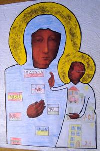 Zadaniem dzieci jest zaprojektowanie i wykonanie sukni dla Matki Bożej w formie plastycznej, na podstawie pobranego szablonu z wydziału katechetycznego strony diecezjalnej, do ikony Matki Bożej Częstochowskiej.