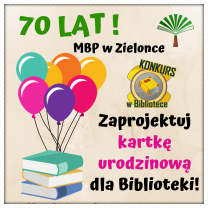 Miejska Biblioteka Publiczna w Zielonce ogłasza konkurs plastyczny pt. "Kartka urodzinowa na 70 lat Miejskiej Biblioteki Publicznej w Zielonce!"