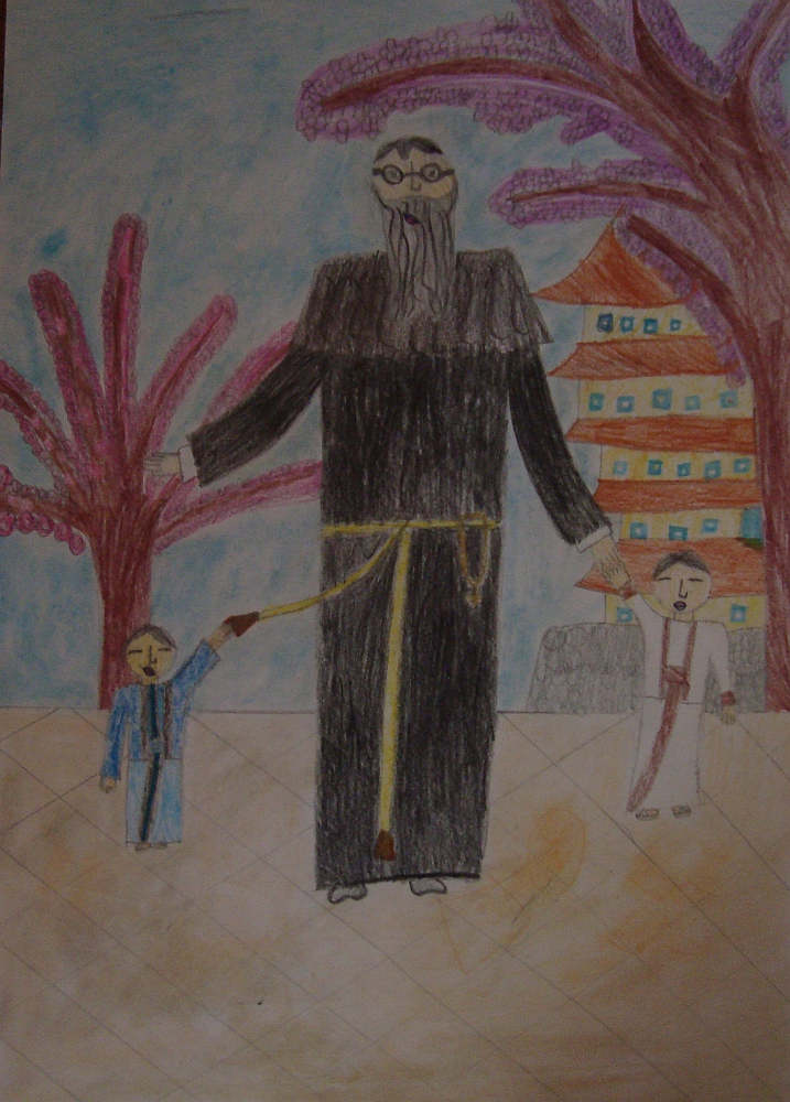 1. Uczniowie ze szkół podstawowych (klasy 0-V) wykonują pracę plastyczną na temat: „Ojciec Maksymilian w Japonii”, ilustrując poniższy fragment z książki Marii Kączkowskiej „Ojciec Kolbe”, mówiący o jednym ze spotkań o. Maksymiliana z japońskimi dziećmi: