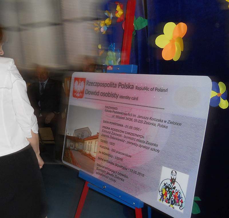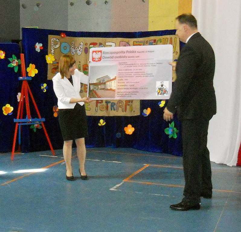 W dniu 13 maja 2016 około godziny 10:25 burmistrz miasta pan Grzegorz Dudzik uroczyście wręczył na ręce pani Dyrektor Joanny Zielenkiewicz ów dowód osobisty w rozmiarze ogromnym.