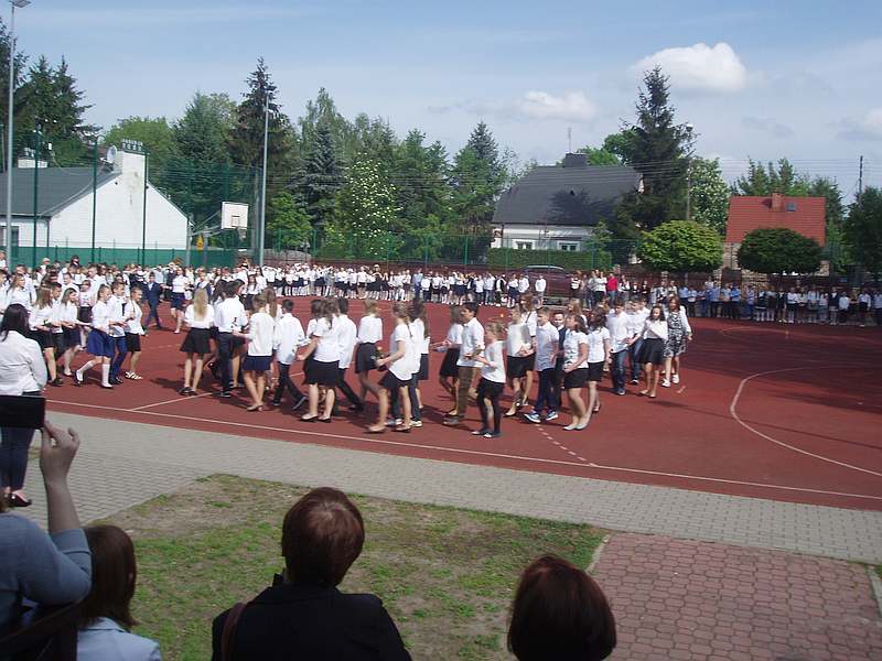 Taniec do muzyki z filmu "Pan Tadeusz" udał się naszym uczniom pięknie. Choreografia z figurami i przejściami została przygotowana pod czujnym okiem pani Moniki. Widzowie nagrodzili gromkimi brawami wspaniały występ.