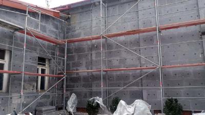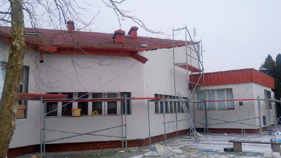 Wykonano też ocieplenie stropów i znaczną część robót ocieplenia ścian zewnętrznych – przyklejono i zamocowano niemal cały styropian na ścianach budynków dydaktycznych i na sali gimnastycznej, układana jest również pierwsza warstwa siatki na kleju.