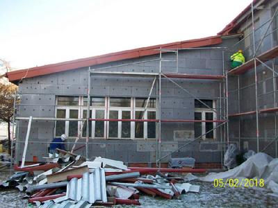 Trwają prace przy termomodernizacji budynku Szkoły Podstawowe nr 3 w Zielonce. Na zdjęciach można obejrzeć stan prac w lutym 2018 r.