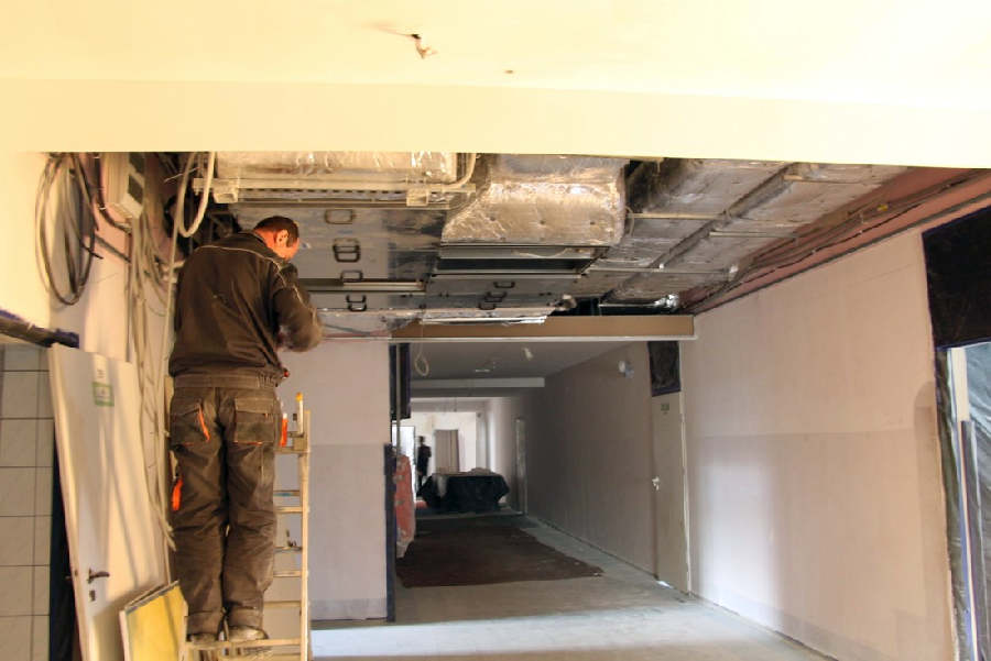 Wykonano montaż central i przewodów wentylacji mechanicznej oraz instalację elektryczną zasilania wentylacji. Wykonano ocieplenie stropów i ścian wewnętrznych w budynku dydaktycznym i ocieplenie na ścianach zewnętrznych z pierwszą warstwą osiatkowania.