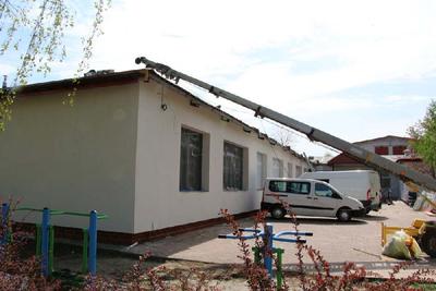 Postępują prace związane z termomodernizacją budynku Szkoły Podstawowej nr 3 w Zielonce. Wykonawca przystąpił do montażu wentylatorów na elewacji budynku i wentylatorów dachowych. Kontynuowane są prace przy wymianie dachu.